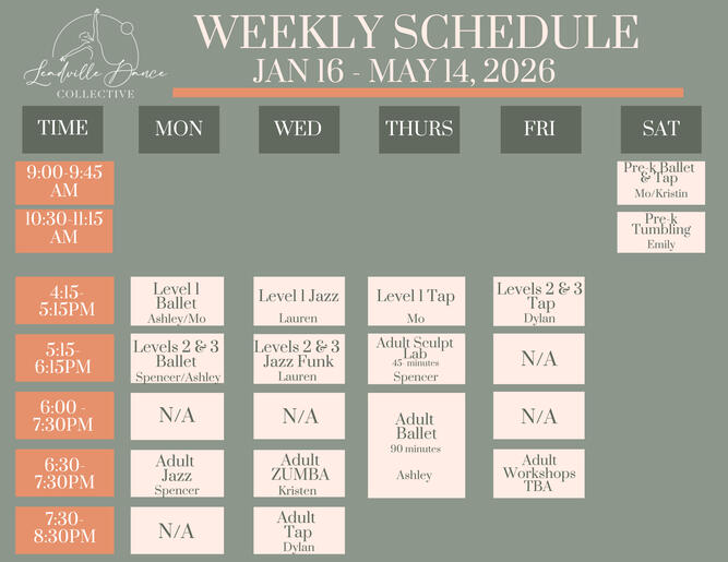 La principal escuela de danza del condado de Lake promueve el desarrollo socioemocional de estudiantes de todas las edades a través de la educación en danza y oportunidades de actuación. Nuestras clases se llevan a cabo en un ambiente de estudio seguro y accesible. Nuestro objetivo es eliminar barreras para que todos puedan desarrollar un gran amor por la danza, al mismo tiempo que inspiramos confianza en nosotros mismos, disciplina, comunidad y pasión por las artes escénicas.Nuestras ofertas incluyen jazz, tap, ballet, hip-hop, tumbling y más para una variedad de edades, desde 3 hasta adultos. La danza, diversas especialidades de movimiento y oportunidades de actuación ayudan a las mentes en crecimiento a encontrar formas de evaluar situaciones, pensar de manera innovadora y sentirse más seguras al enfrentarse a situaciones desconocidas.Las clases para jóvenes y algunas clases para adultos culminan con una presentación al final de la sesión. Para nuestra sesión de invierno/primavera 2026, esto incluye un recital formal el sábado 16 de mayo, con disfraces, fotos y más.